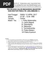 Program studi magister fisika tes seleksi penerimaan calon mahasiswa magister fisika 2015 petunjuk: Lulus ujian seleksi untuk materi khusus terkait hukum dagang, hukum perdata, dan hukum agraria yang diselenggarakan oleh program magister kenotariatan fhui. Sebagai pengetahuan dasar bagi mahasiswa dalam melakukan penelitian dan . Materi tes, dasar pertimbangan penerimaan, dan pengumuman. 2, pendidikan fisika, s2, a, 40, 89.